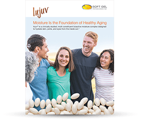 Our exclusive Injuv softgels contain a naturally-derived hyaluronic acid (HA) complex with high oral bioavailability, which is clinically proven to increase moisture content for youthful-looking skin. A proprietary enzyme-cleaving technique allows it to have a low molecular weight for the highest possible absorption. Since the amount of HA synthesis decreases with age, skin becomes dry, further exacerbating the moisture loss problem. Our Injuv hyaluronic Acid Capsules helps replenish what time has stripped away.